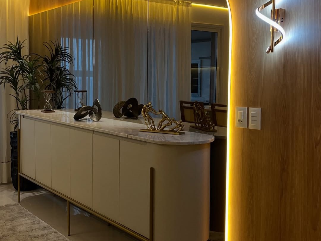 Todos os nossos projetos já incluem espelhos, vidros, ferragens e sistemas de alta qualidade (dobradiças, corrediças, puxadores etc.), garantindo beleza, durabilidade e funcionalidade.